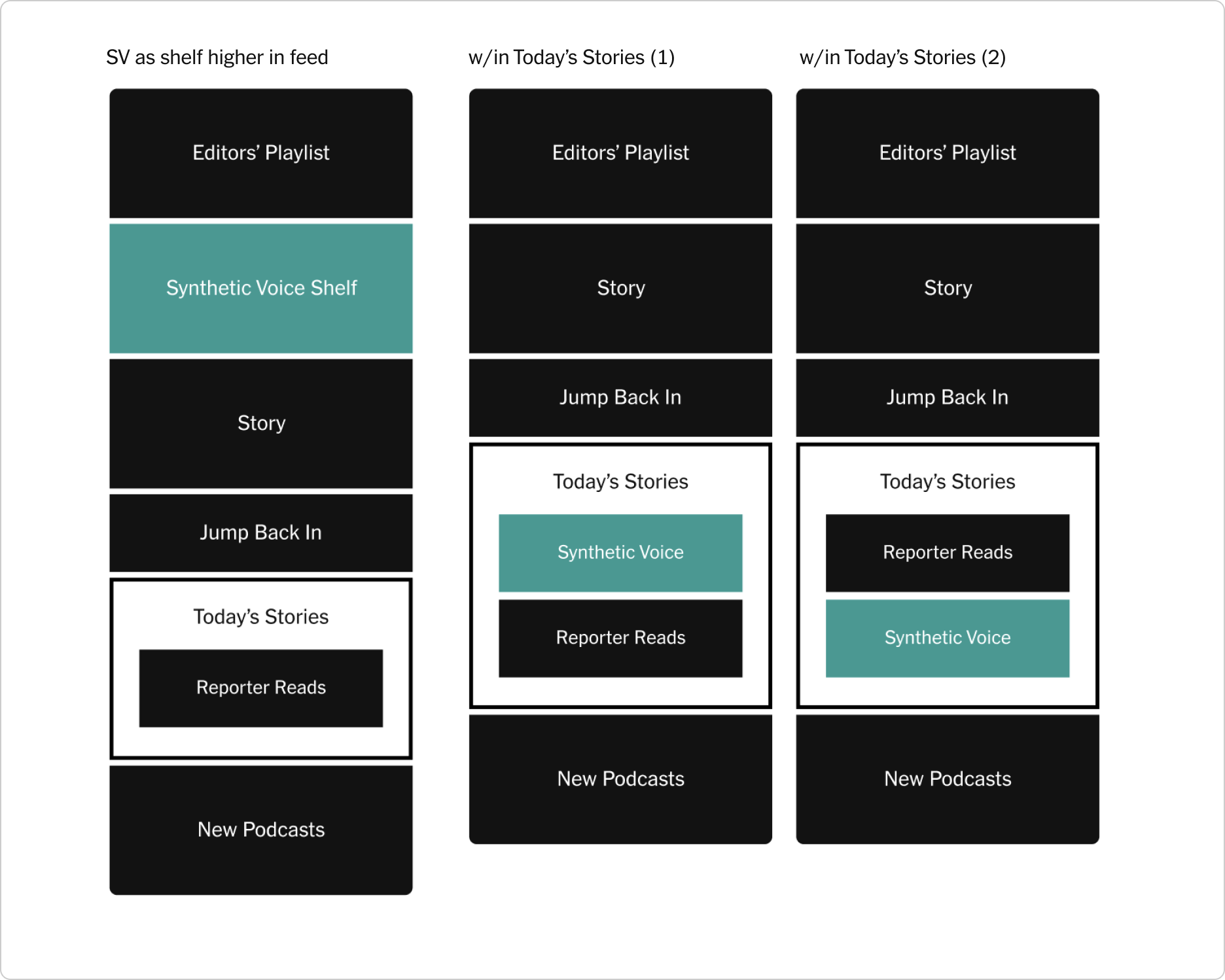 This exploration inspired our stakeholders to invest more work in reporter and human signaling across the product, which we ended up pursuing and building in the app. The work has since informed a broader approach to signaling GenAI audio articles in the core app.
